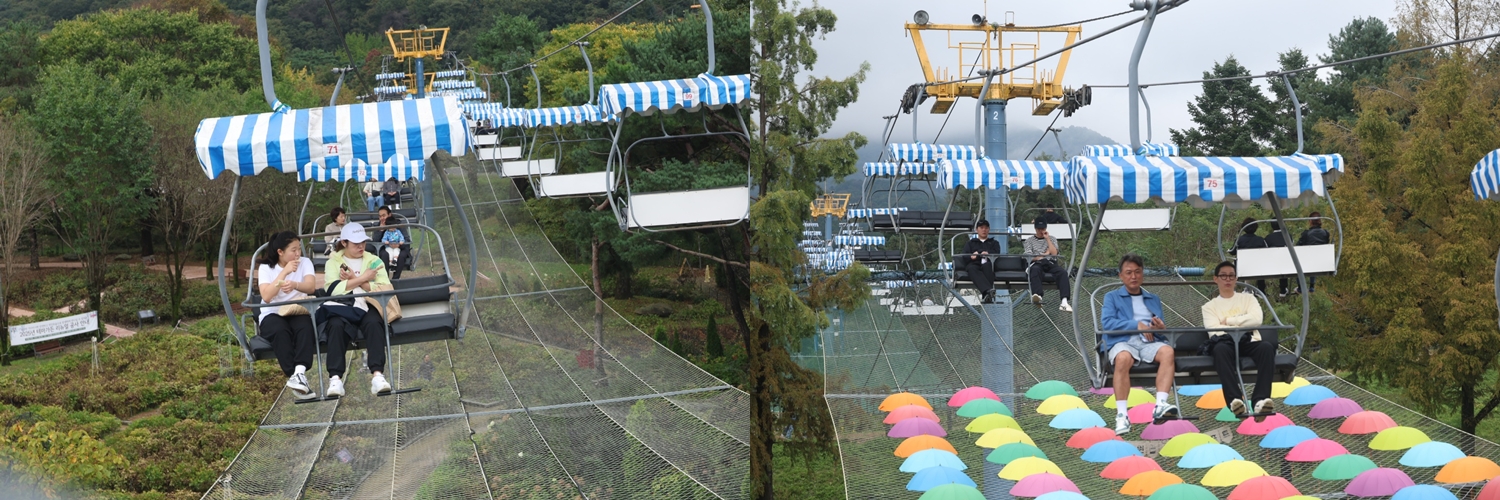 한 시간 반 정도 걸은 뒤에는 서울대공원 리프트를 타고 내려왔습니다. 호수 위를 지나 내려오는 리프트에서 아이들은 즐거워했고, 아이가 어릴 적 같이 탔던 추억이 생각나는 직원도 있었습니다.