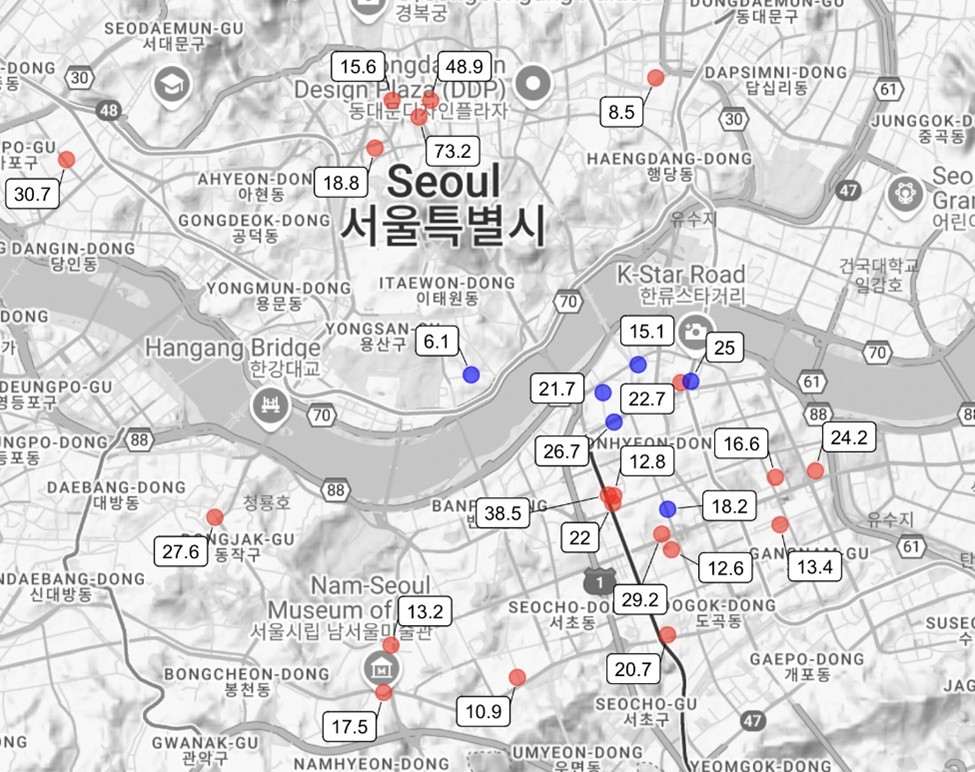 2025년 1분기 거래금액 상위 30건의 공간 분포를 살펴보면, 서울의 CBD(도심권 업무지구)와 GBD(강남권 업무지구)에 거래가 집중되어 있는 것으로 나타난다. 이는 부동산 투자자들이 여전히 검증된 핵심 입지와 임차 수요가 확보된 지역을 선호하고 있음을 보여준다.
