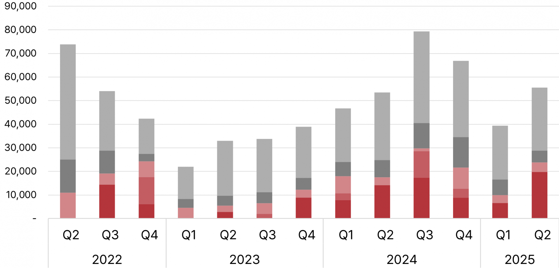 2025년 2분기에도 소형 자산(C급)의 거래량은 유지되거나 감소한 반면, 프라임급 자산의 거래는 견고하게 유지되고 있다.